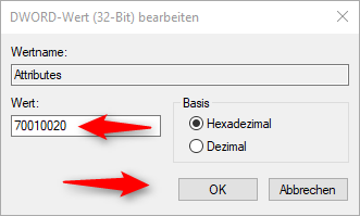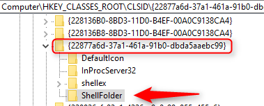 Computer\HKEY_CLASSES_ROOT\CLSID\{22877a6d-37a1-461a-91b0-dbda5aaebc99}\ShellFolder und Return drücken
